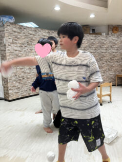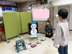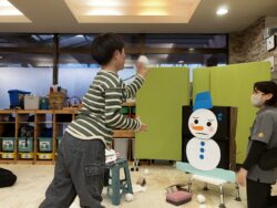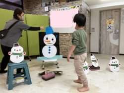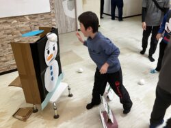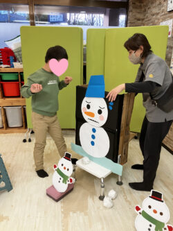 雪だるまさんに向かって雪に見立てたボールを投げていきます💕