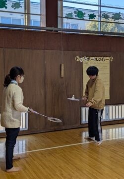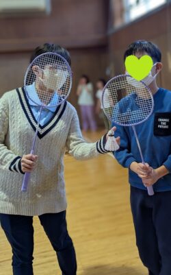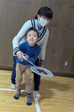 スタッフと一緒にバトミントンをしたり