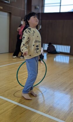 フラフープで遊んだり