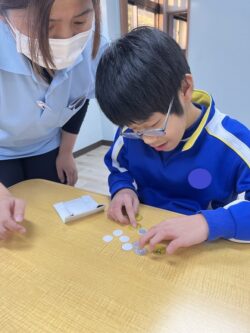 子どもたちにそれぞれ50円分の紙のお金を持たせます💰
