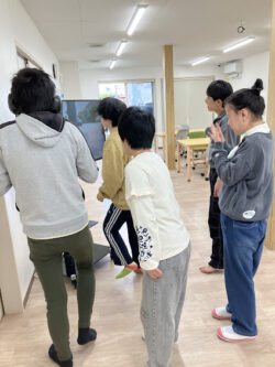 音楽に合わせて体を動かしたり、職員の動きを真似したりしながら、楽しそうな笑顔😃がたくさん見られました。