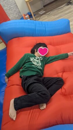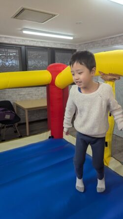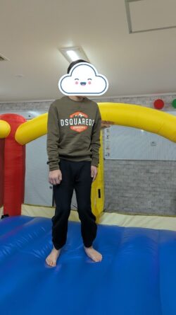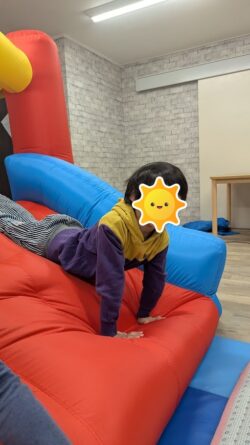 バウンサーの上で跳んだり、バランスを取ったりする中で、子どもたちからは自然と笑顔があふれていました😊