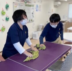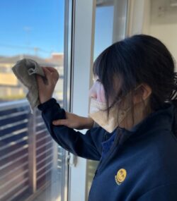 清掃活動はマットや床磨きに窓拭き。