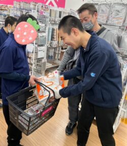 買い物は百均などへ。皆さんで協力して買い物。