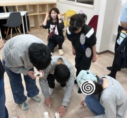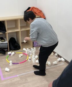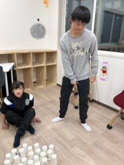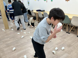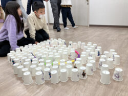 声を掛け合いながら協力して紙コップを集めれたね:->