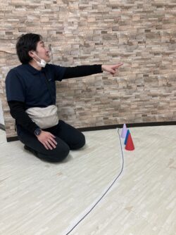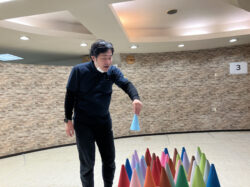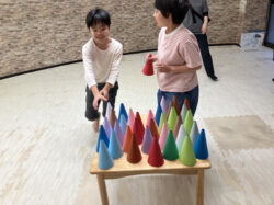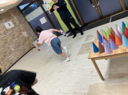 〇自分の陣地内に部屋の真ん中のコーンを時間内にどのくらい集めらるか?