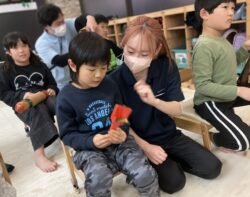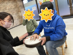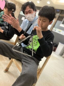 みんな先生のリズムに合わせて上手に叩けていますね!