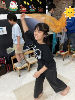カラフルなスカーフを使っての『ジャンボリミッキー』