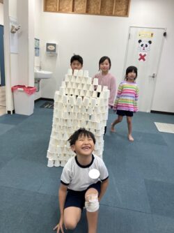 ②紙コップタワーみんなで協力しあい紙コップを積み上げて高いタワーを目指しました🗼