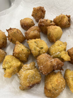 揚げたてのドーナッツに生クリームを絞り出したり