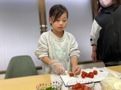 自分たちで切った材料を生地の上にのせていきます。