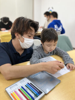 「どんな色にしようかな?」と考えながら、一つひとつ丁寧に色を塗るこどもたち。