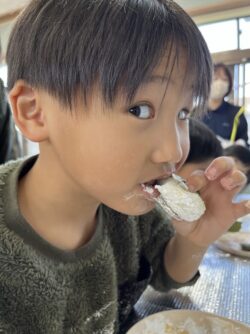 今回は機械でのもちつきだったので蒸す・こねるの過程の見学をしてもらいました🍊