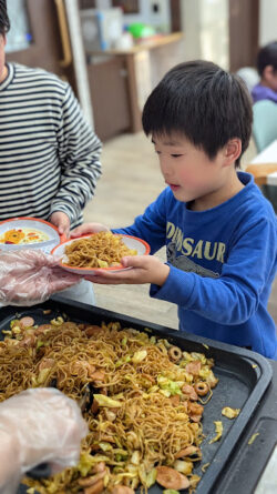 みんなで楽しくおしゃべりをしながら、美味しそうに焼きそばを食べました。