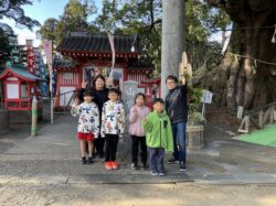 神社に行く前に、お参りの仕方、二拝二拍手一拝を練習して行きました。