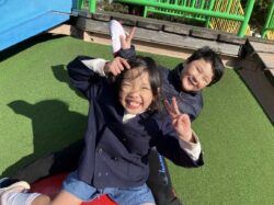 公園では、北風が吹く中、みんなで鬼ごっこ👹