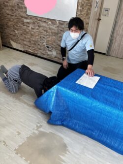 まずは、机の下をくぐったら・・!
