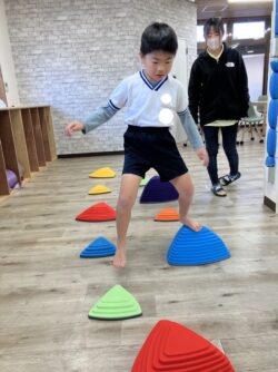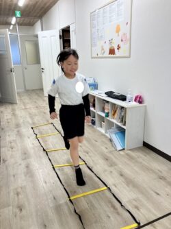 1、ラダー・2、反復横跳び・3、バランスストーン・4、バランスボールの4種目に挑戦しました💦😊