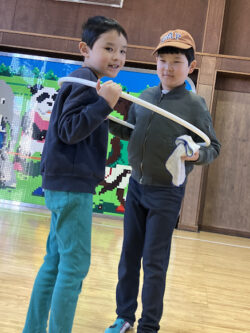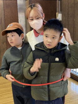 お友達二人とスタッフさんで電車ごっこ!🚃
