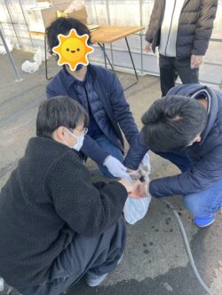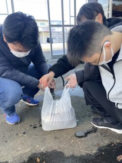 水を入れたビニール袋に菌床を入れてしっかり封を閉じ、再び成長を促します。