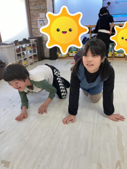 そして後半はもっと足全体を使ったカエル跳びなどにチャレンジしていきます。