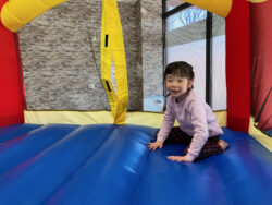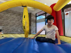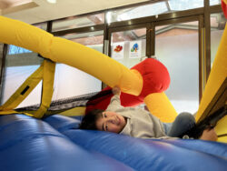 バウンサーではふわふわの感覚を楽しんでいました!