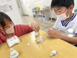完成しただるまの顔を見て笑いあい楽しそうでした。