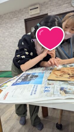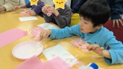 花びらづくりでは、折る・ちぎる・丸めるなどの工程を取り入れ、一人ひとりのペースで取り組んでいます。