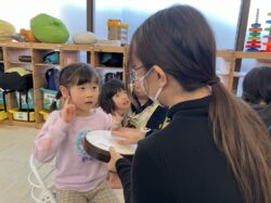 次に、みんなでお菓子の絵カードの名前を言って楽しみます🍭