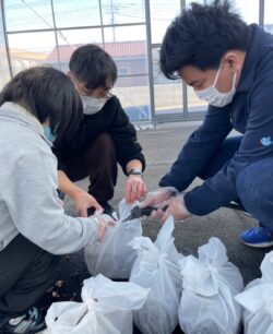 午前は植栽です。椎茸の菌床のお手入れ半日水に浸けて再度取り出すという刺激を与える作業。