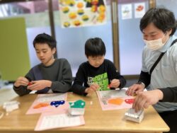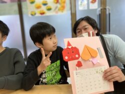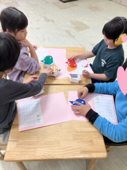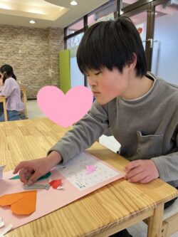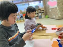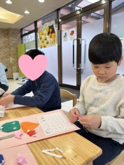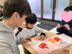 2月の節分やバレンタインにちなんだ鬼や金棒、ハートを貼りました!!