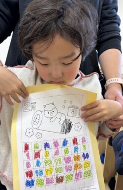 完成したカレンダーを手に『できたよ!』と嬉しそうにお友達同士で見せ合う姿がとても素敵でした💯