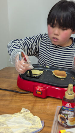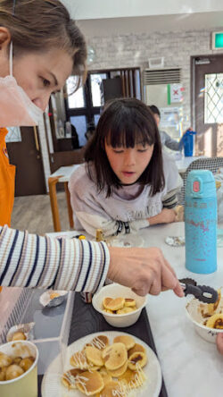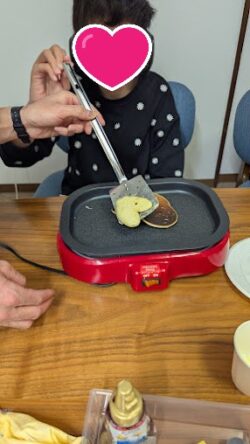 自分で焼いて、自分でトッピングしたホットケーキ。みんなで美味しく頂きました!🥰