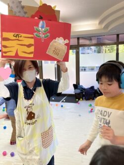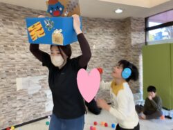 節分ということでスタッフが持つ鬼の箱に玉入れを行いました!🌟