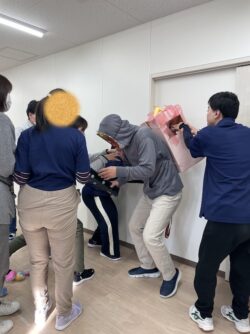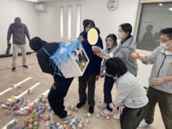 最後に2チームに分かれ、赤鬼、青鬼の背中に向けてボール入れのレクリエーション🌟