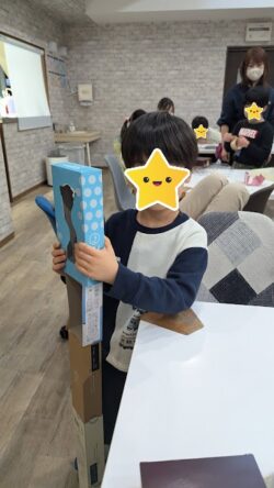 「今日は工作だよ」と声をかけると「やったー!」と歓声が上がりました🙌