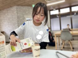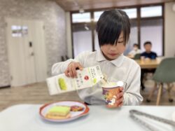 紙コップを取り、こぼさないように上手に注ぎます🍹