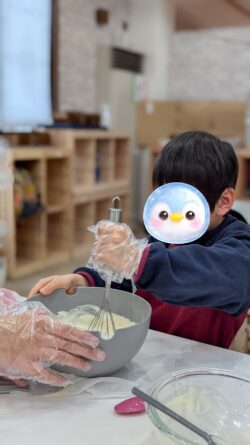 高学年のお姉さんが丁寧にカップに生地を入れて盛り付けをしてくれました👏🏻