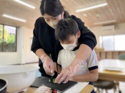 ピーマンをスタッフと一緒に切りました!