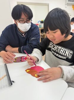 見本を見ながら思い思いのお顔を描いていきます🎵