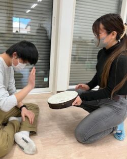 太鼓をとんとんしたり、鈴をシャンシャンと響かせたり・・・