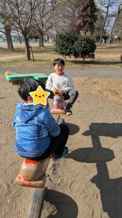 公園に着くと、「あれやりたい!!」「一緒にあれで遊びに行こう!!」などとお友達との会話が聞こえてきました💕💕