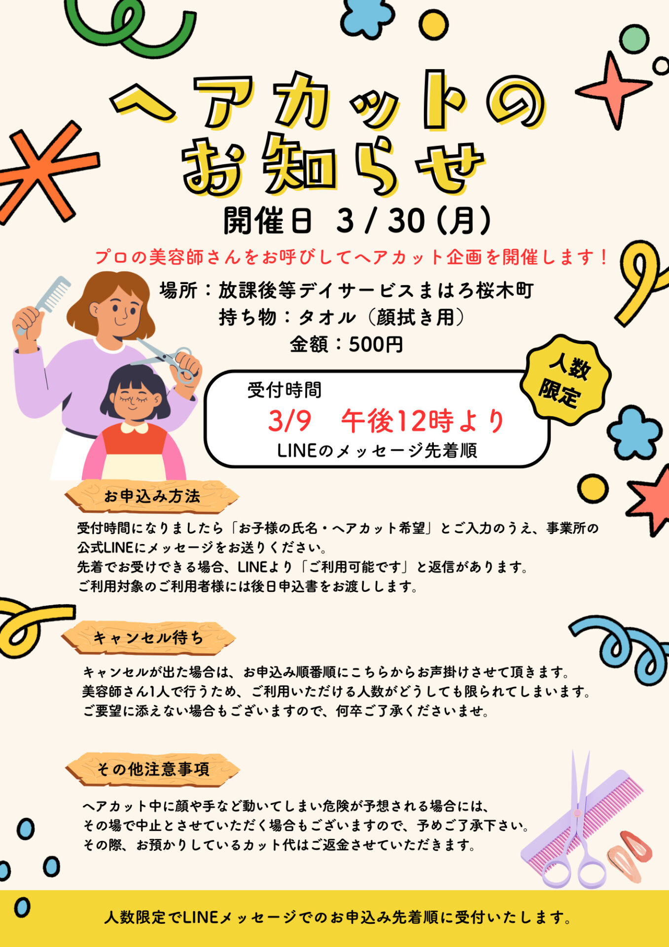 放課後等デイサービス まはろ桜木町にて【ヘアカットイベント】を開催します😊✨