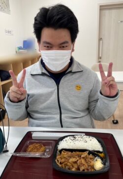 もう我慢できない!ってところでお昼ご飯。本日はオリジン弁当です。