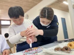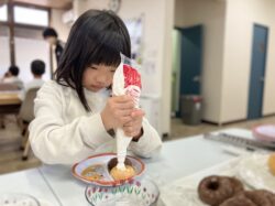 ドーナツに生クリームとカラースプレーを好きなようにトッピングします⭐