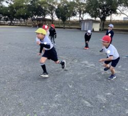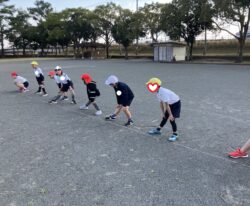②離れた場所に置いてあるコーンを1周してゴールまで目指します!