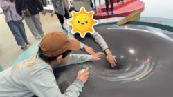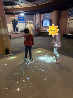 センサーが人に反応して、床を照らすプロジェクターが人の動きを流れ星のように映す展示ではしゃいだり…