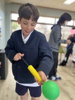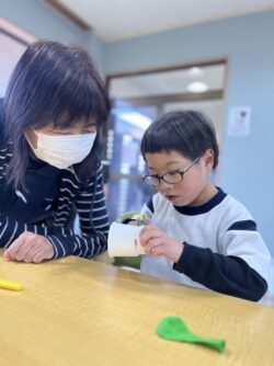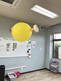 今日の課題は「実験」で、紙コップと風船を使って、【ふわふわ気球】を作りました!