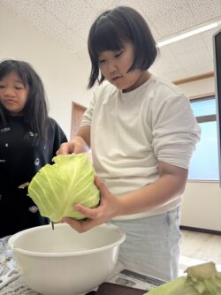 千切りチーム・とり汁チーム・目玉焼きチームに分かれて作りました😊🥢