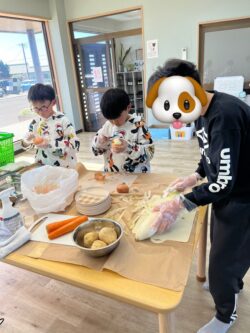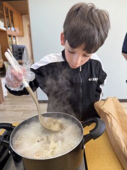 とり汁は、高学年の子どもたち担当でした。さすが高学年!上手に包丁を使って手際よく、野菜を切ったり煮込んだり、